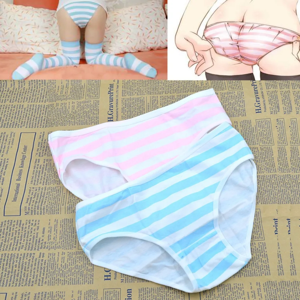 SAVE 10%! The Besf Offer Cute Women Girl Anime Style Lolita Striped Intimate Panties Blue Pink&Green Striped Underwear Cosplay Accessories
